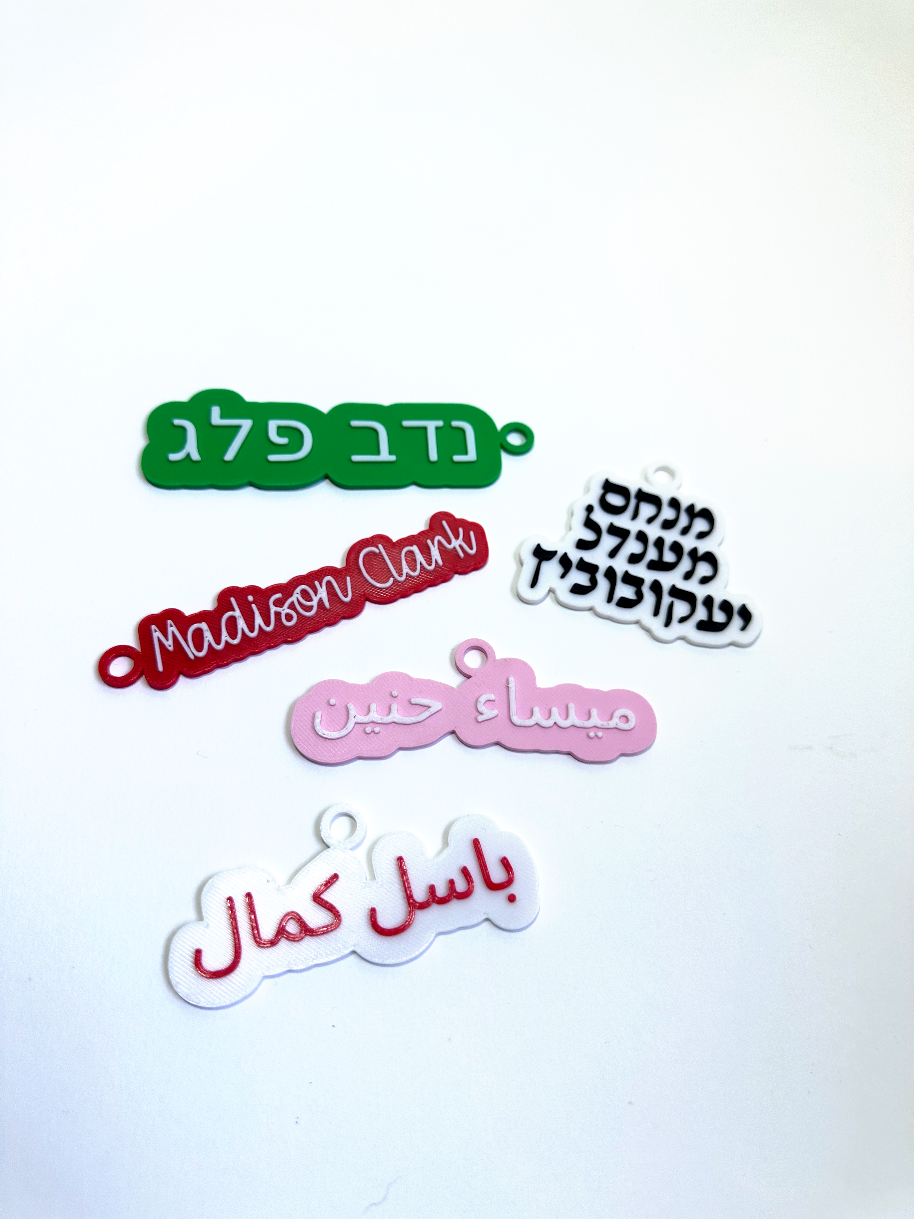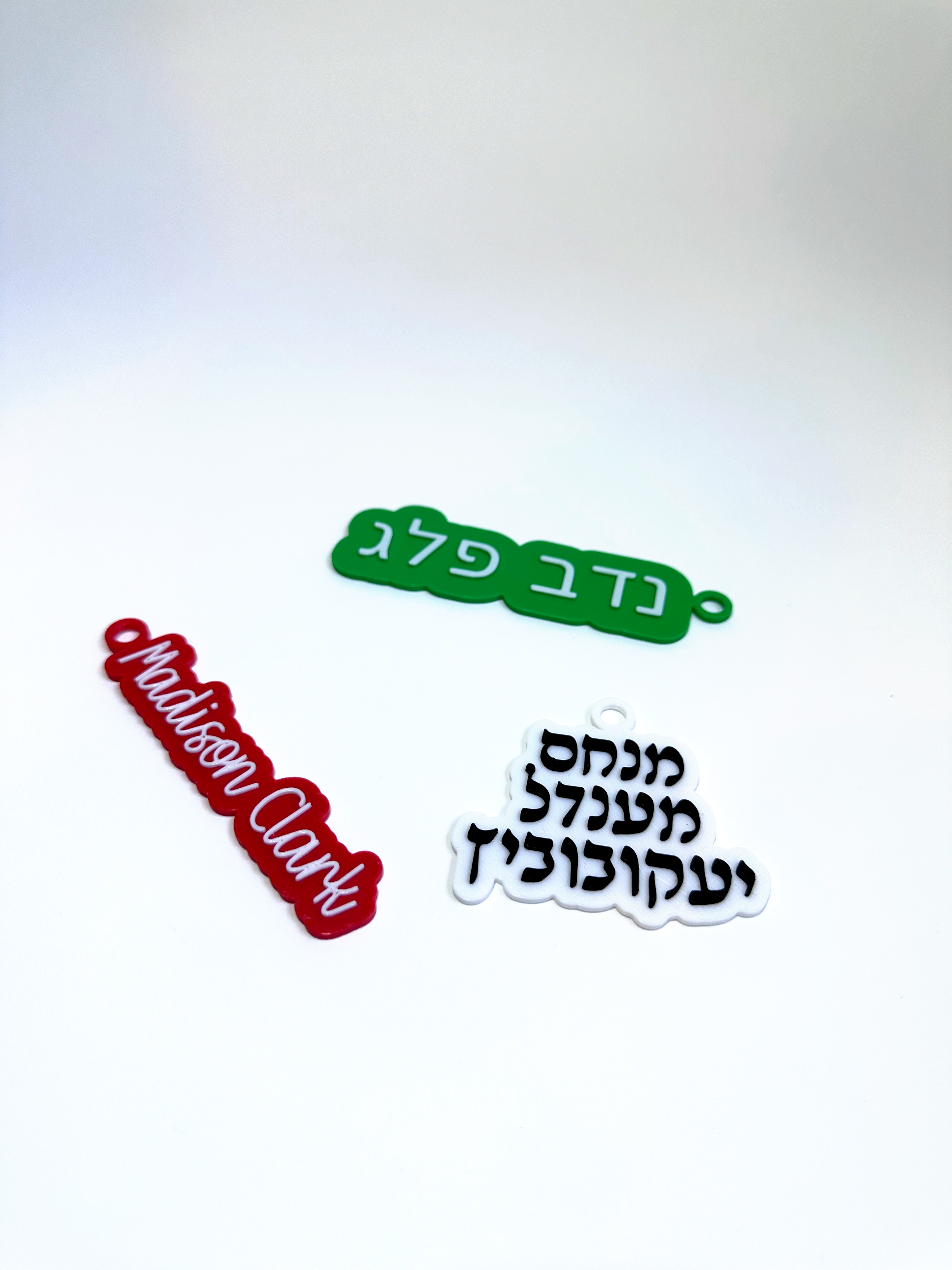 Choose your font, colors, text size, and alignment, and decide whether to include a loop for attaching to keychains, bags, toys, or personalized gifts.